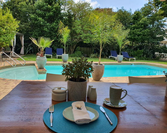Our lush, enclosed garden offers privacy and serenity to our guests where you can unwind, relax and enjoy the swimming pool, a drink or a Braai (South African BBQ).